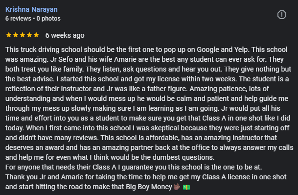 At Tri Counties Truck Driving Academy, we’re more then just a CDL school- we’re a team dedicated to helping you succeed on the road and in your career. Our lead instructor, Jr Sefo, brings years of hands-on experience in successfully training safe CDL drivers. With a deep understanding of what it takes to become a professional driver, Jr decided to take his expertise to the next level by opening his own academy. Our program is designed to give students comprehensive, practical training, combining classroom theory, pre-trip inspections, behind-the-wheel range exercises, and real-world public road experience. We focus not only on helping you earn your CDL but also on building the confidence, skills, and professionalism you’ll need for a long-term career in trucking. At Tri Counties Truck Driving Academy, we treat every student like part of our driving family- supporting you every step of the way, celebrating your progress and helping you reach your goals behind the wheel.